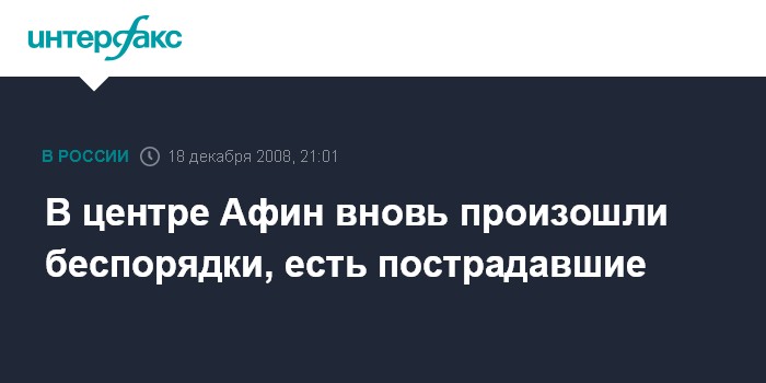 Москва. 18 декабря. INTERFAX.RU - Не менее трех человек получили травмы в четверг в результате новых столкновений радикалов с полицией в Афинах.
