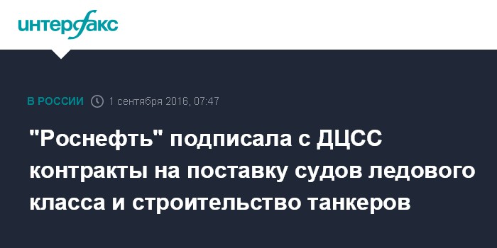 "Роснефть" подписала с ДЦСС контракты на поставку судов ледового класса и строительство танкеров