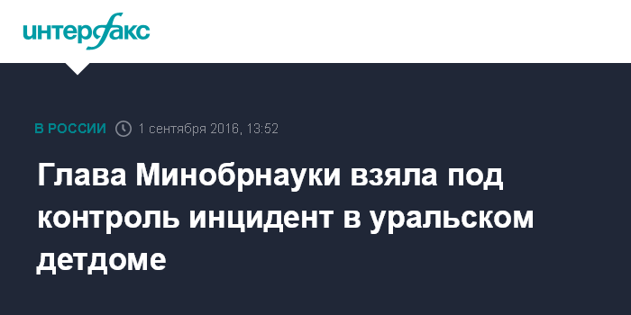 Глава Минобрнауки взяла под контроль инцидент в уральском детдоме