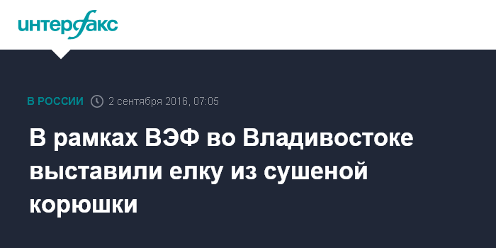 Москва. 2 сентября. INTERFAX.RU - Необычное рыбное дерево украсило набережную бухты Аякс во Владивостоке, где в эти дни проходит Второй Восточный экономический форум.
