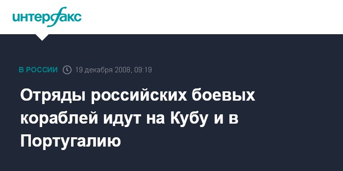 Москва. 19 декабря. INTERFAX.RU - Корабли Северного флота российского ВМФ в пятницу начнут визиты на Кубу и в Португалию.