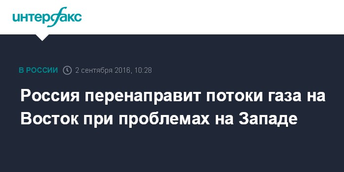 Москва. 2 сентября. INTERFAX.RU - Президент РФ Владимир Путин заявил, что при возникновении сложностей с поставками газа в Европу Россия будет переключать эти потоки на Восток.
