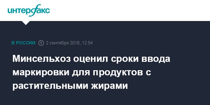 Минсельхоз оценил сроки ввода маркировки для продуктов с растительными жирами