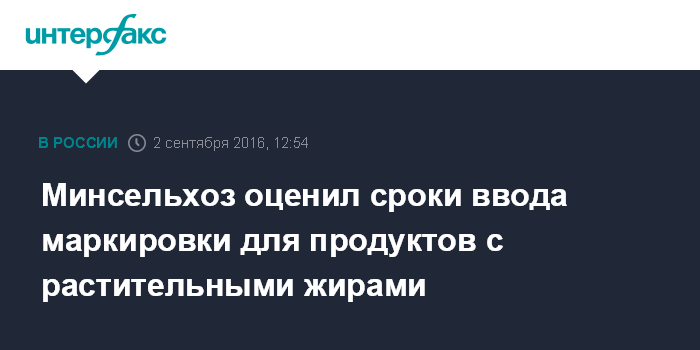 Москва. 2 сентября. INTERFAX.RU - Маркировка молочной продукции с содержанием растительных жиров может быть введена с 2017 года