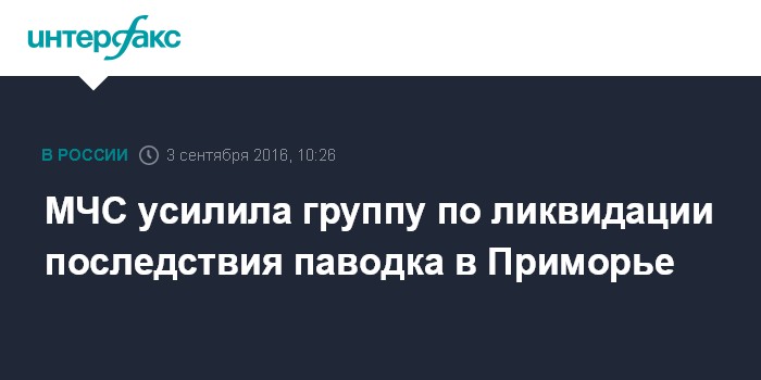 Москва. 3 сентября. INTERFAX.RU - Общая группировка по ликвидации последствий паводка в Приморском крае увеличена за сутки почти на пять тысяч человек, сообщили в пресс-службе МЧС России.