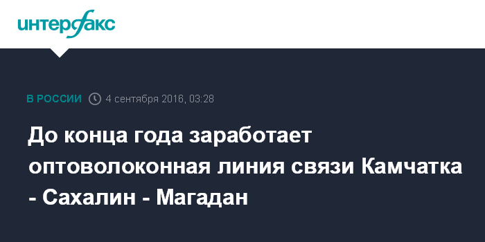 До конца года заработает оптоволоконная линия связи Камчатка - Сахалин - Магадан