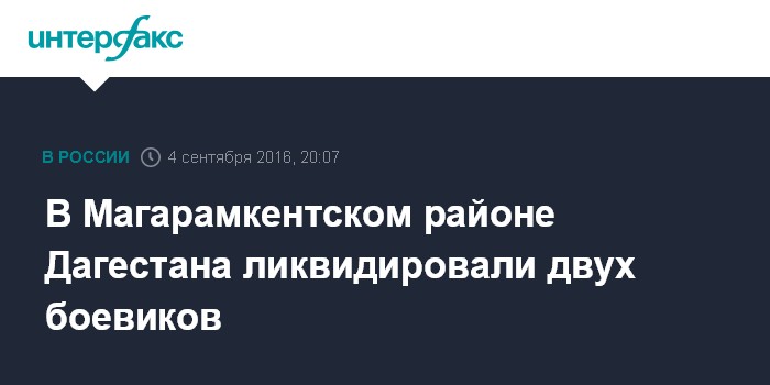 Москва. 4 сентября. INTERFAX.RU - Силовики уничтожили двух боевиков в ходе спецоперации в Магарамкентском районе Дагестана, сообщил агентству "Интерфакс" источник в силовых структурах региона.