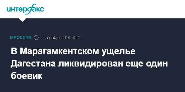 Москва. 5 сентября. INTERFAX.RU - Боевик, оказавший сопротивление сотрудникам федеральных сил, уничтожен на территории Марагамкентского района Дагестана, где действует режим КТО, сообщил агентству "Интерфакс" источник в силовых структурах региона.