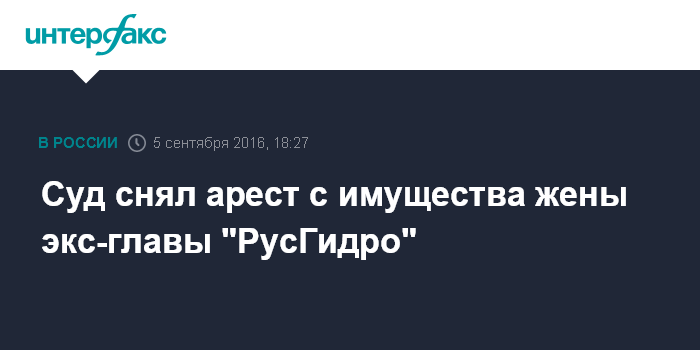 Суд снял арест с имущества жены экс-главы "РусГидро"