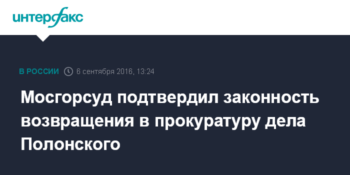 Мосгорсуд подтвердил законность возвращения в прокуратуру дела Полонского