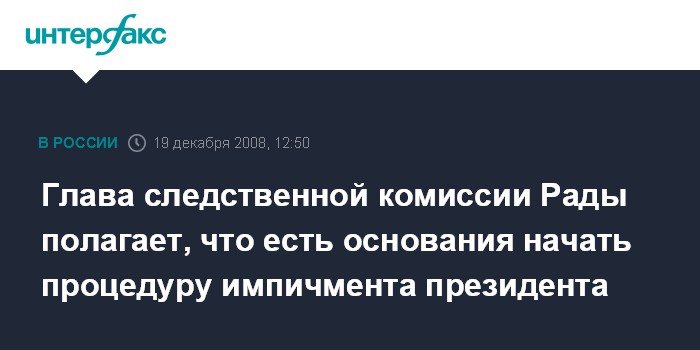 Москва. 19 декабря. INTERFAX.RU - Председатель временной следственной комиссии Верховной Рады Украины по вопросам поставок в Грузию украинской военной техники Валерий Коновалюк (фракция Партии регионов) считает, что материалов отчета комиссии достаточно для начала процедуры импичмента президента Виктора Ющенко.