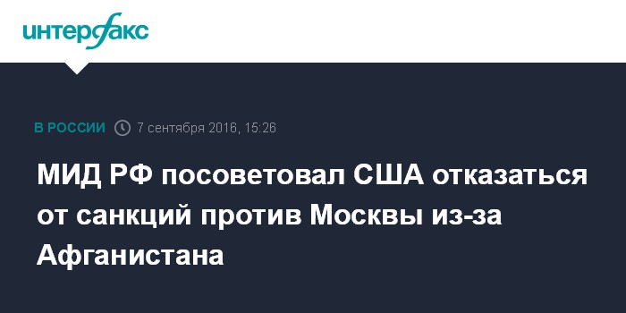 Москва. 7 сентября. INTERFAX.RU - В МИД РФ увязывают полноценное взаимодействие Москвы и Вашингтона по Афганистану с отменой действующих в отношении России санкций.