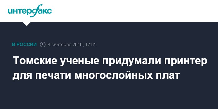 Москва. 8 сентября. INTERFAX.RU - Разработчики СКБ "Смена" Томского государственного университета систем управления и радиоэлектроники (ТУСУР) созали макет устройства, позволяющего печатать многослойные платы, сообщает пресс-служба вуза.
