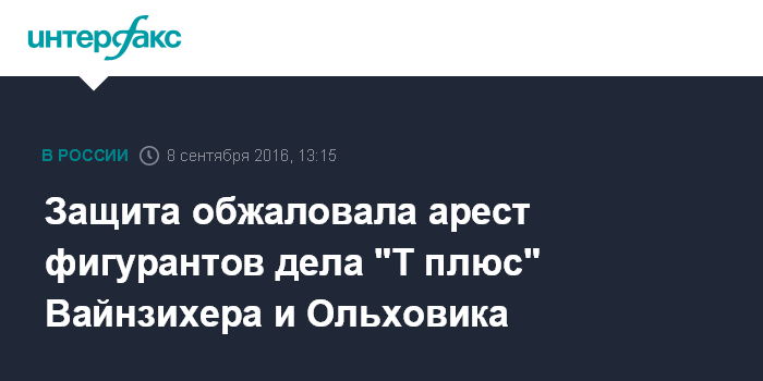Защита обжаловала арест фигурантов дела "Т плюс" Вайнзихера и Ольховика