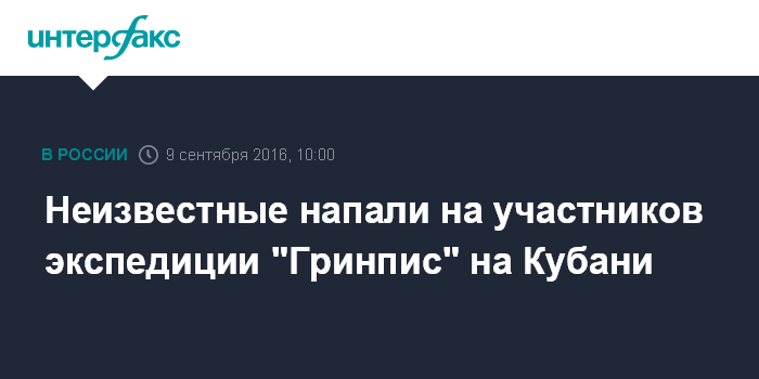 Москва. 9 сентября. INTERFAX.RU - Группа неизвестных в ночь на пятницу напала на участников противопожарной экспедиции "Гринпис России" и общественной организации "Экологическая вахты по Северному Кавказу" в Краснодарском крае. Об этом сообщил "Интерфаксу" координатор "Эковахты" Андрей Рудомаха.
