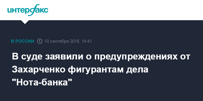 В суде заявили о предупреждениях от Захарченко фигурантам дела "Нота-банка"