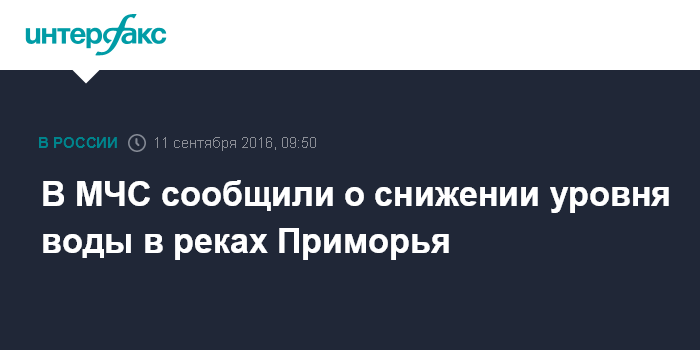 Москва. 11 сентября. INTERFAX.RU - Уровень воды в реках Приморского края снижается, сообщили в воскресенье в пресс-службе МЧС России.