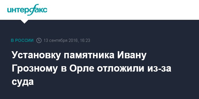 Москва. 13 сентября. INTERFAX.RU - Заводской суд Орла принял к производству иск об оспаривании действий администрации и мэра города по установке памятника Ивану Грозному, сообщается на сайте суда.