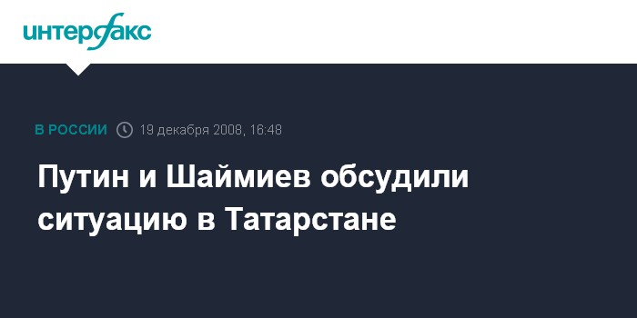 Москва. 19 декабря. INTERFAX.RU - Премьер-министр РФ Владимир Путин и президент Татарстана Минтимер Шаймиев обсудили социально-экономическую ситуацию в республике.