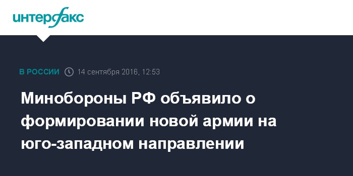 Минобороны РФ объявило о формировании новой армии на юго-западном направлении