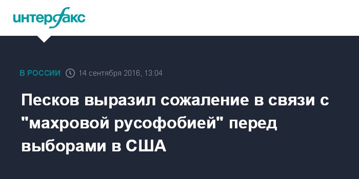 Песков выразил сожаление в связи с "махровой русофобией" перед выборами в США