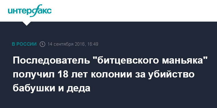 Последователь "битцевского маньяка" получил 18 лет колонии за убийство бабушки и деда