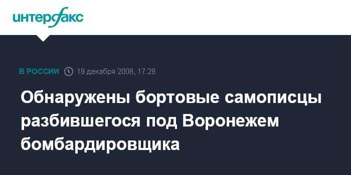 Москва. 19 декабря. INTERFAX.RU - На месте падения фронтового бомбардировщика Су-24 под Воронежем найдены "черные ящики" разбившегося в пятницу самолета, сообщил помощник главкома ВВС подполковник Владимир Дрик.