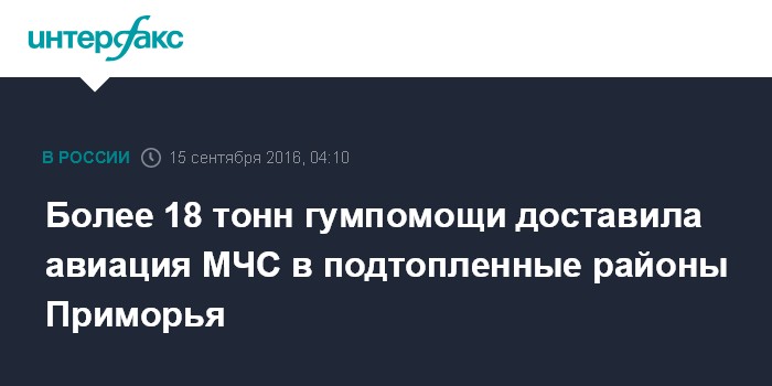 Москва. 15 сентября. INTERFAX.RU - Спасатели МЧС России продолжают доставлять гуманитарную помощь в наиболее пострадавшие от наводнения районы Приморья, сообщает пресс-служба Дальневосточного регионального центра МЧС России.