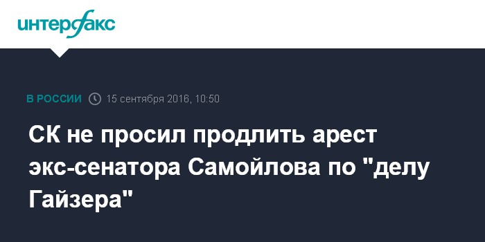 СК не просил продлить арест экс-сенатора Самойлова по "делу Гайзера"
