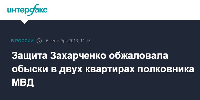 Защита Захарченко обжаловала обыски в двух квартирах полковника МВД