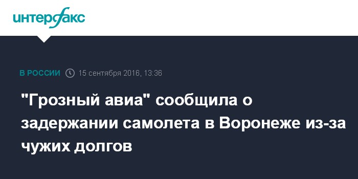 По его словам, некая фирма "Компас", задолжавшая воронежскому аэропорту деньги, ранее арендовала самолет у "Грозный авиа". "Теперь аэропорт не дает нам разрешение на вылет за долги этой компании. Мы - "Грозный авиа". Мы ничего не должны", - подчеркнул летный директор.