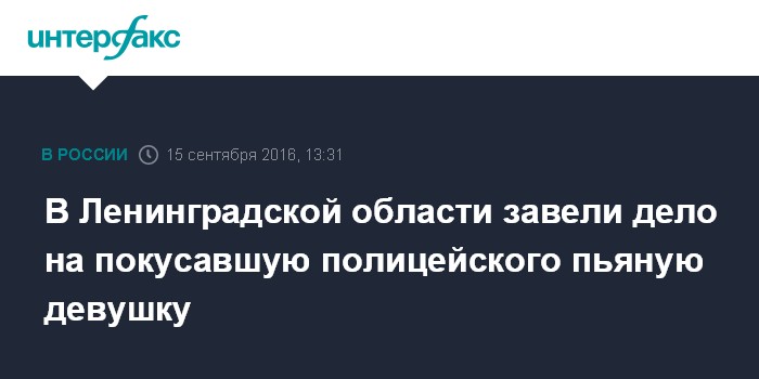 В Ленинградской области завели дело на покусавшую полицейского пьяную девушку