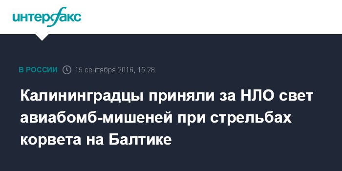 Москва. 15 сентября. INTERFAX.RU - Некоторые жители побережья Калининградской области приняли за неопознанные летающие объекты свет от авиабомб во время артиллерийских стрельб, сообщает штаб Западного военного округа (ЗВО).