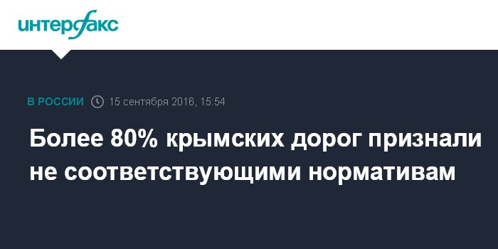 Кроме того, он сообщил, что на сегодняшний день, согласно диагностике, проведенной в 2014 году, более 80% крымских дорог не соответствуют действующим нормативам.