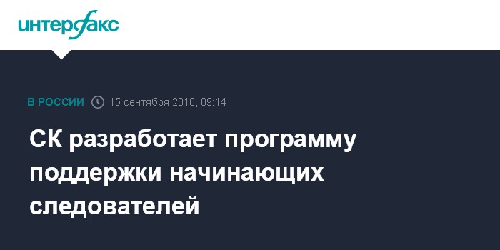 Москва. 15 сентября. INTERFAX.RU - Следственный комитет разработает программу поддержки начинающих следователей для их скорейшей адаптации в службе, сообщил официальный представитель ведомства Владимир Маркин.