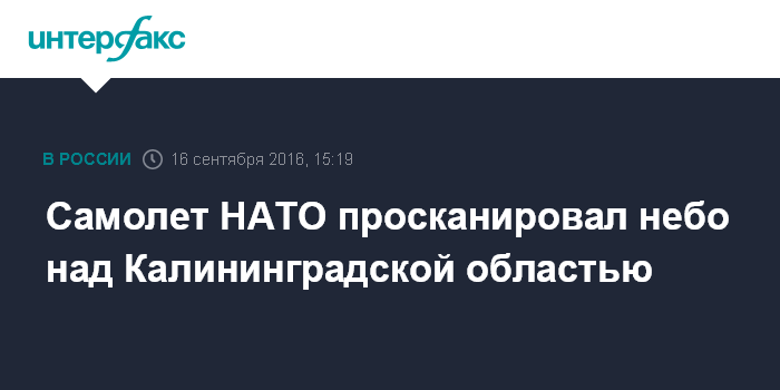 Москва. 16 сентября. INTERFAX.RU - Самолет дальнего радиолокационного обнаружения и авиационного наведения НАТО Е-3А AWACS в пятницу подлетел к границам Калининградской области, сообщается на западных сайтах, отслеживающих передвижения военной авиации.