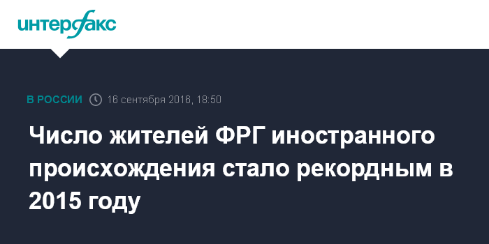 Это рекордный показатель за всю историю страны, отмечается в сообщении ведомства. Доля жителей с иностранными корнями в 2015 году составляла 21% населения ФРГ.