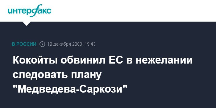 "Мы очень рассчитывали после тех консультаций, которые прошли в Цхинвали, что представители Европейского Союза будут строго придерживаться той линии, которая определена в соглашении Медведева - Саркози. Hо они уходят от этого формата и от этих соглашений", - заявил Кокойты в пятницу "Интерфаксу" по прибытии в Архангельск.