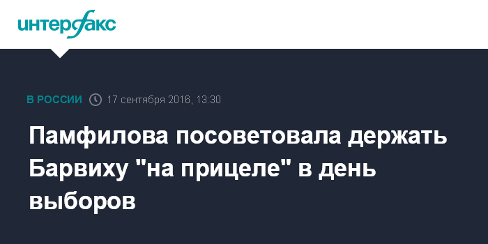 Памфилова посоветовала держать Барвиху "на прицеле" в день выборов