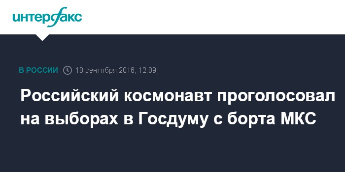 Москва. 18 сентября. INTERFAX.RU - Космонавт Анатолий Иванишин, находящийся на борту Международной космической станции (МКС), проголосовал на выборах депутатов Госдумы по закрытому каналу связи, сообщает пресс-служба ЦНИИмаш.