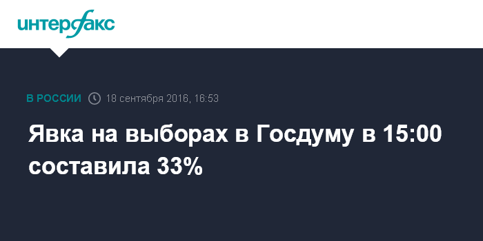 Явка на выборах в Госдуму в 15:00 составила 33%
