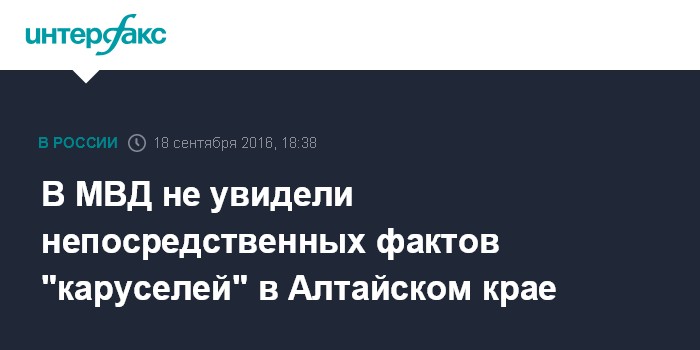 Москва. 18 сентября. INTERFAX.RU - МВД РФ не подтверждает факты "каруселей" на выборах в Алтайском крае, сообщил замглавы ведомства Александр Горовой.