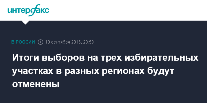 Итоги выборов на трех избирательных участках в разных регионах будут отменены