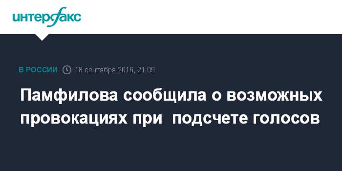 "Сейчас начнется подсчет голосов, где-то он уже идет. Надо отметить, что уже несколько дней мы получаем сигналы о возможных провокациях именно на этом этапе кампании",- заявила председатель ЦИК Элла Памфилова на заседании в комиссии в воскресенье.