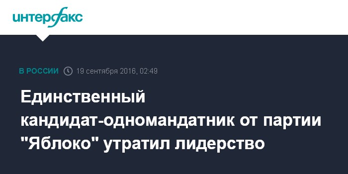 Единственный кандидат-одномандатник от партии "Яблоко" утратил лидерство