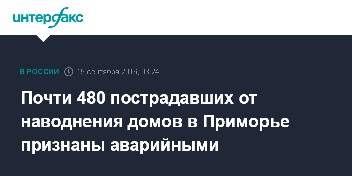 Москва. 19 сентября. INTERFAX.RU - Комиссии, оценивающие ущерб после наводнения в Приморье, признали аварийными 478 домов, сообщил вице-губернатор Приморского края Евгений Вишняков.