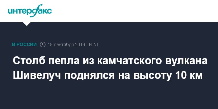 Москва. 19 сентября. INTERFAX.RU - Вулкан Шивелуч, извергающийся на Камчатке, выбрасывает пепел уже на высоту уже 10 км над уровнем моря, сообщили агентству "Интерфакс - Дальний Восток" в понедельник в Камчатском филиале Геофизической службы РАН.