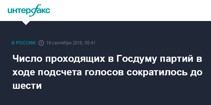 Таким образом, по одномандатным округам в Думу седьмого созыва могут пройти шесть политических партий, а не семь, как сообщалось ранее.