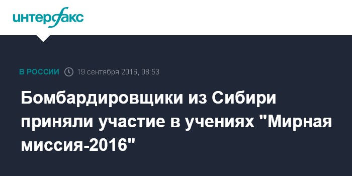 Бомбардировщики из Сибири приняли участие в учениях "Мирная миссия-2016"
