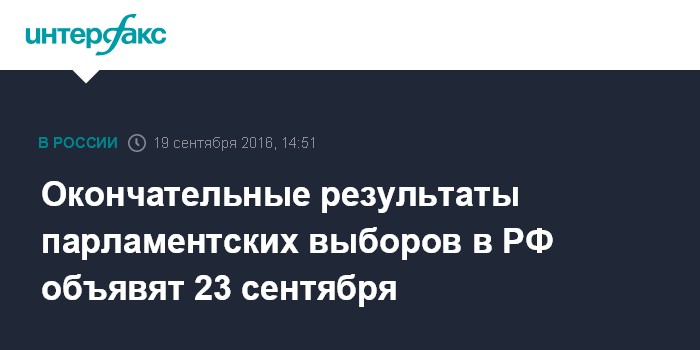 Окончательные результаты парламентских выборов в РФ объявят 23 сентября